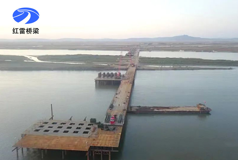 红雷桥梁根据现场地形地貌并结合荷载使用要求,经过现场勘查、结合现场施工情况设计钢栈桥和钢平台施工方案